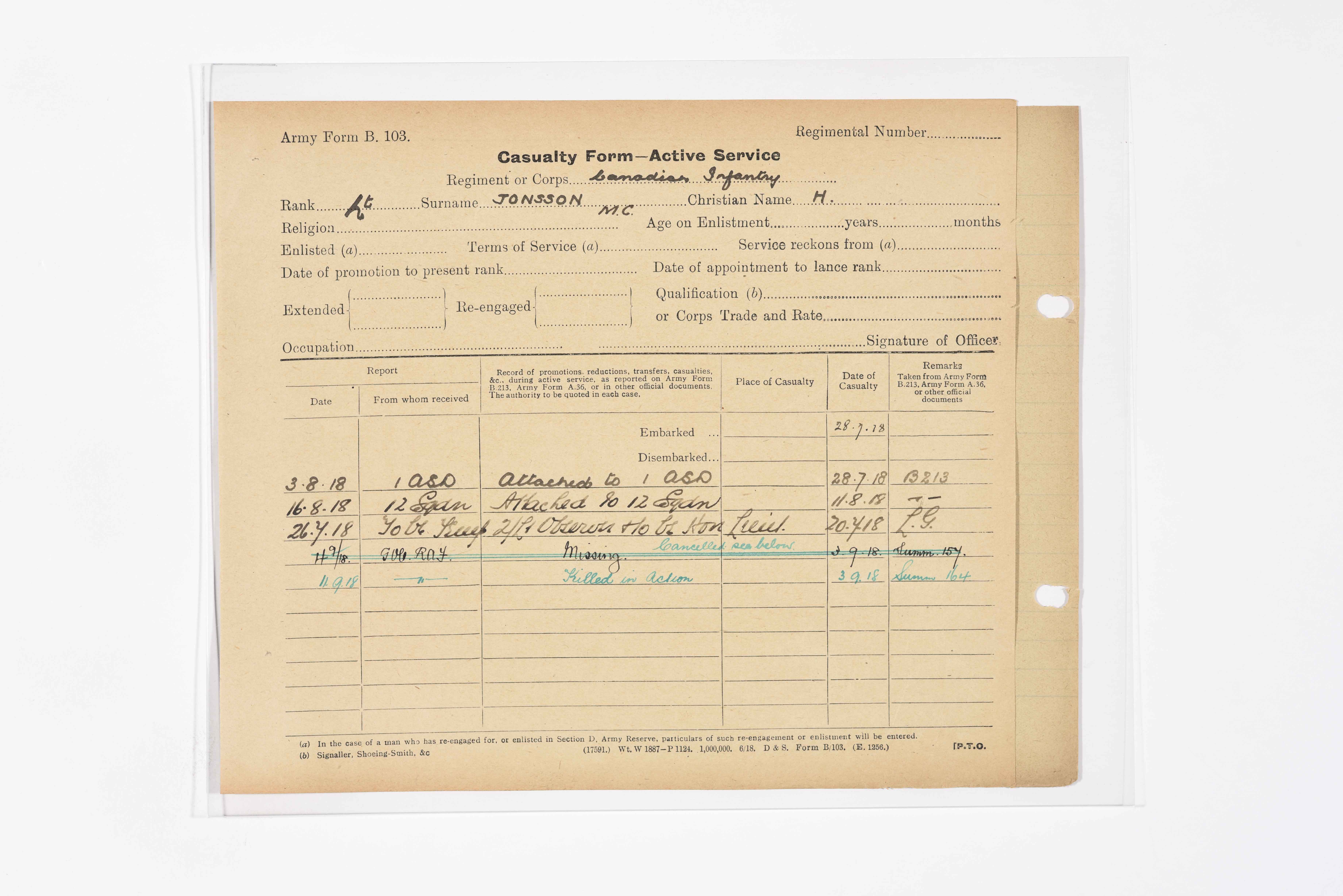 | Regiment / Corps | Canadian Infantry |