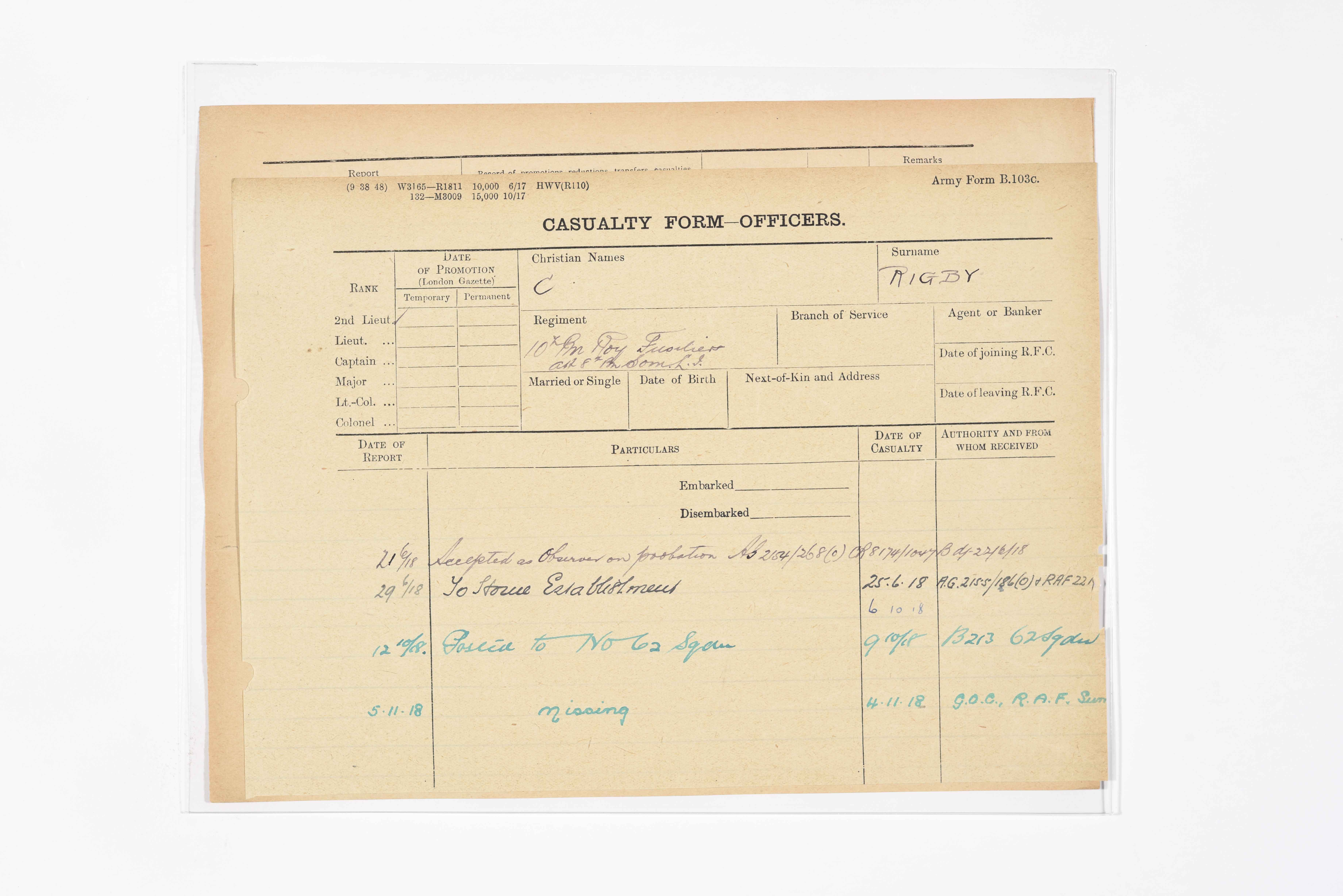 | Rank | 2nd Lieut. |