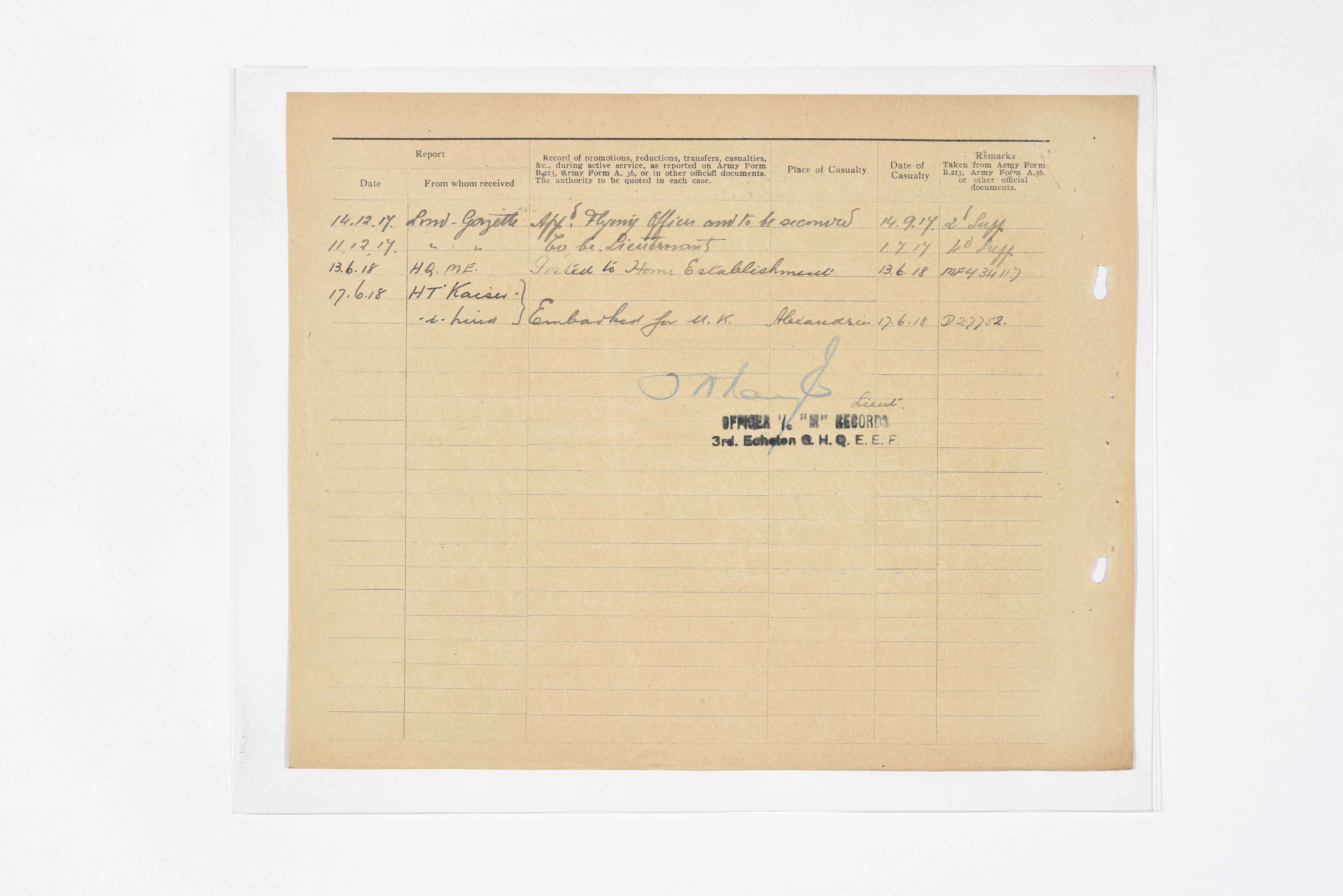 | Rank | 2nd Lieut. |