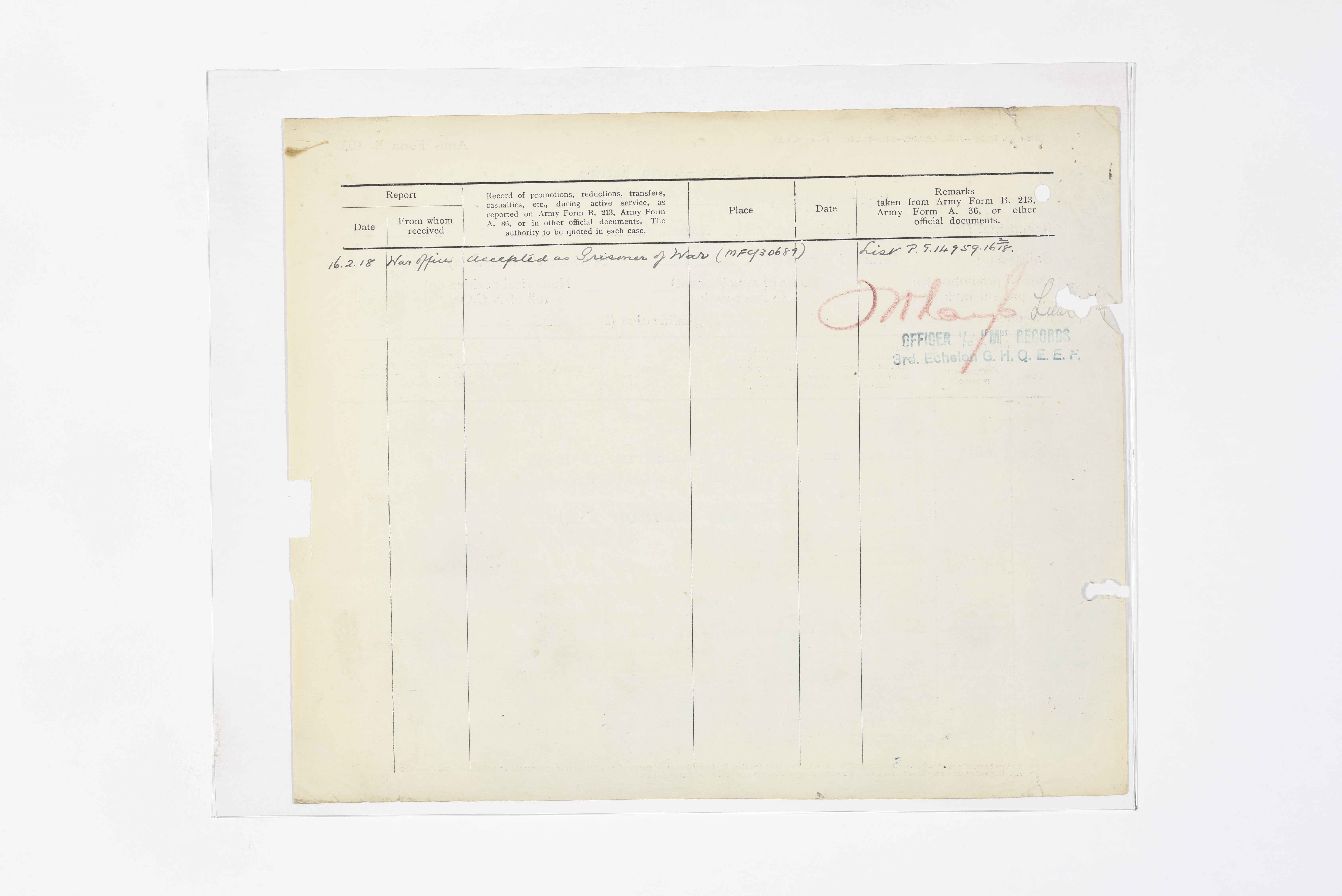 | Regiment / Corps | 17th Bn The Cheshire Regiment and RFC |